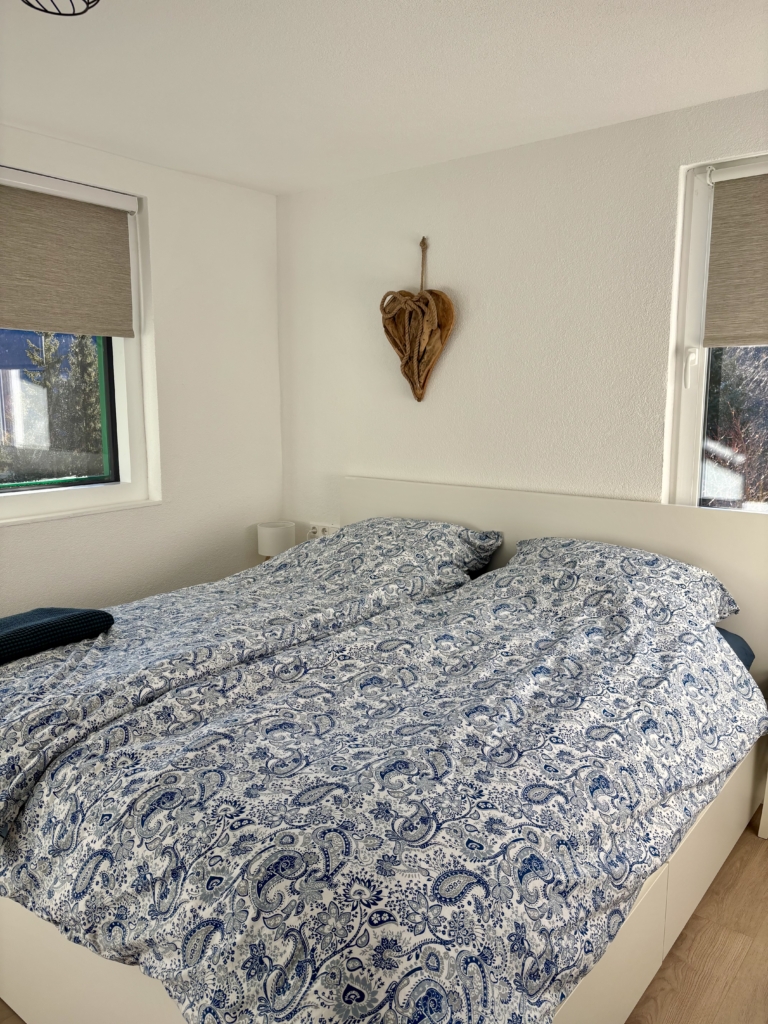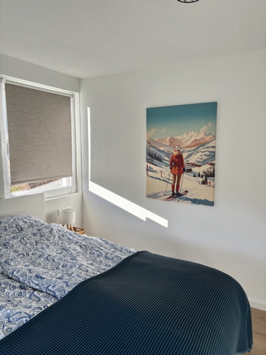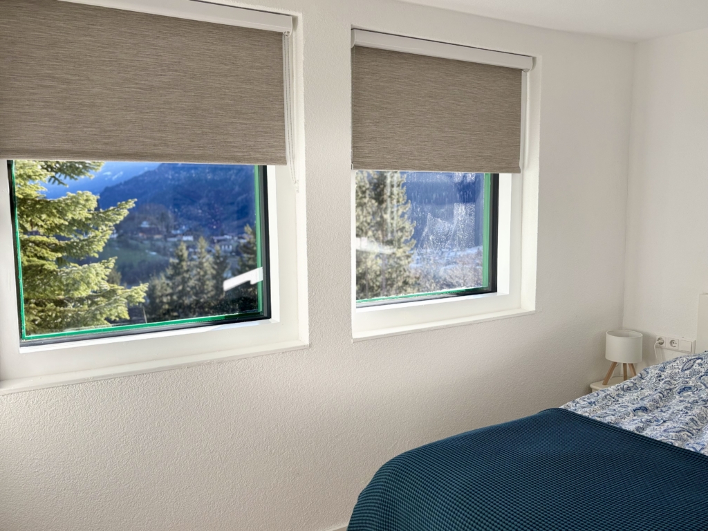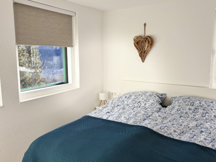 Er staat een bed van 180cmx200cm. Prachtig uitzicht direct op de bergen. Dat is nog eens fijn wakker worden! Uiteraard ontbreken een kledingkast en diverse opties om je kleren op te hangen ook niet.