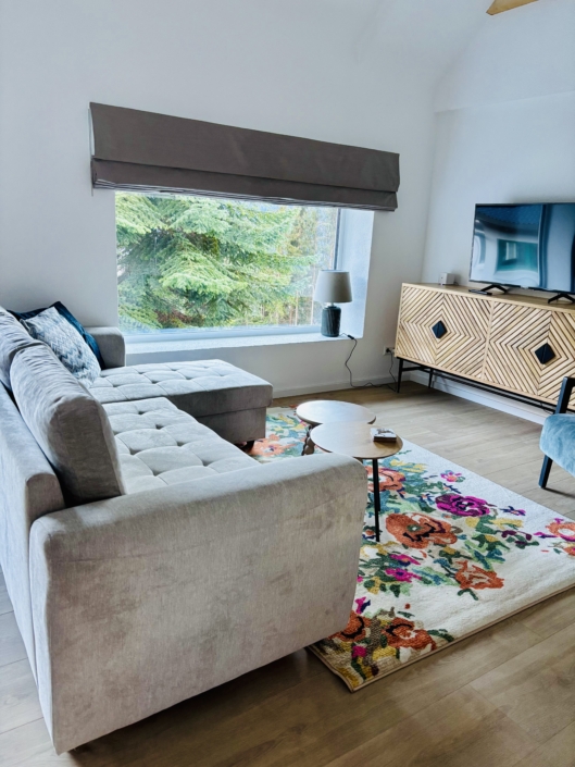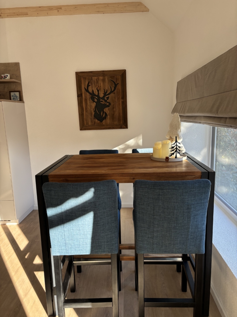 A comfortable (sofa) bed, dining table with 4 chairs to enjoy meals with a direct view of the mountains. A high chair for children is also available. Children’s books and books for adults are in the bookcase. Board games are also provided for many cozy moments together.